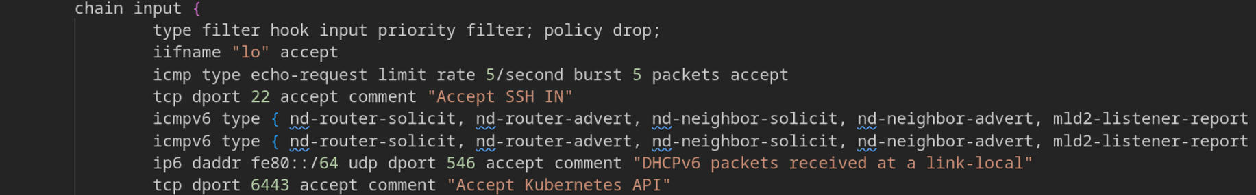 - tcp dport 6443 accept comment "Accept Kubernetes API"